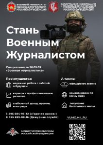Это возможность получить качественное образование, стать частью Вооружённых Сил Российской Федерации и работать в сфере военных медиа и информации.